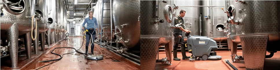 - Lavasciuga Pavimenti = Ideale per pulizia profonda e igienizzazione dei pavimenti di cantina, magazzino e zone di imbottigliamento.